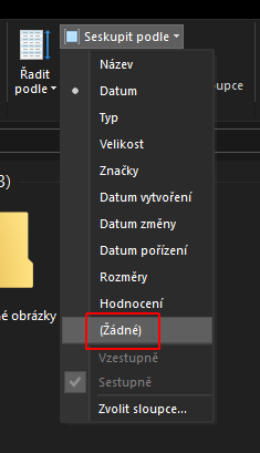 Stejně jako na Win 10 i Win 11 je možné kliknout na prázdném místě v zobrazení složky a ve volbě seskupit to vypnout.