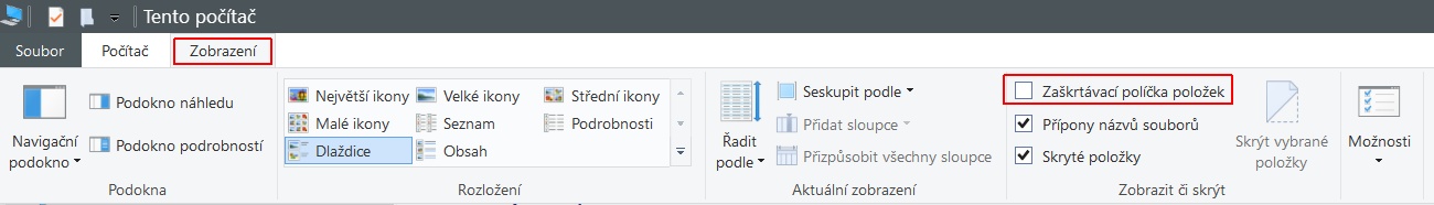 Zobrazení zaškrtávací políčko
