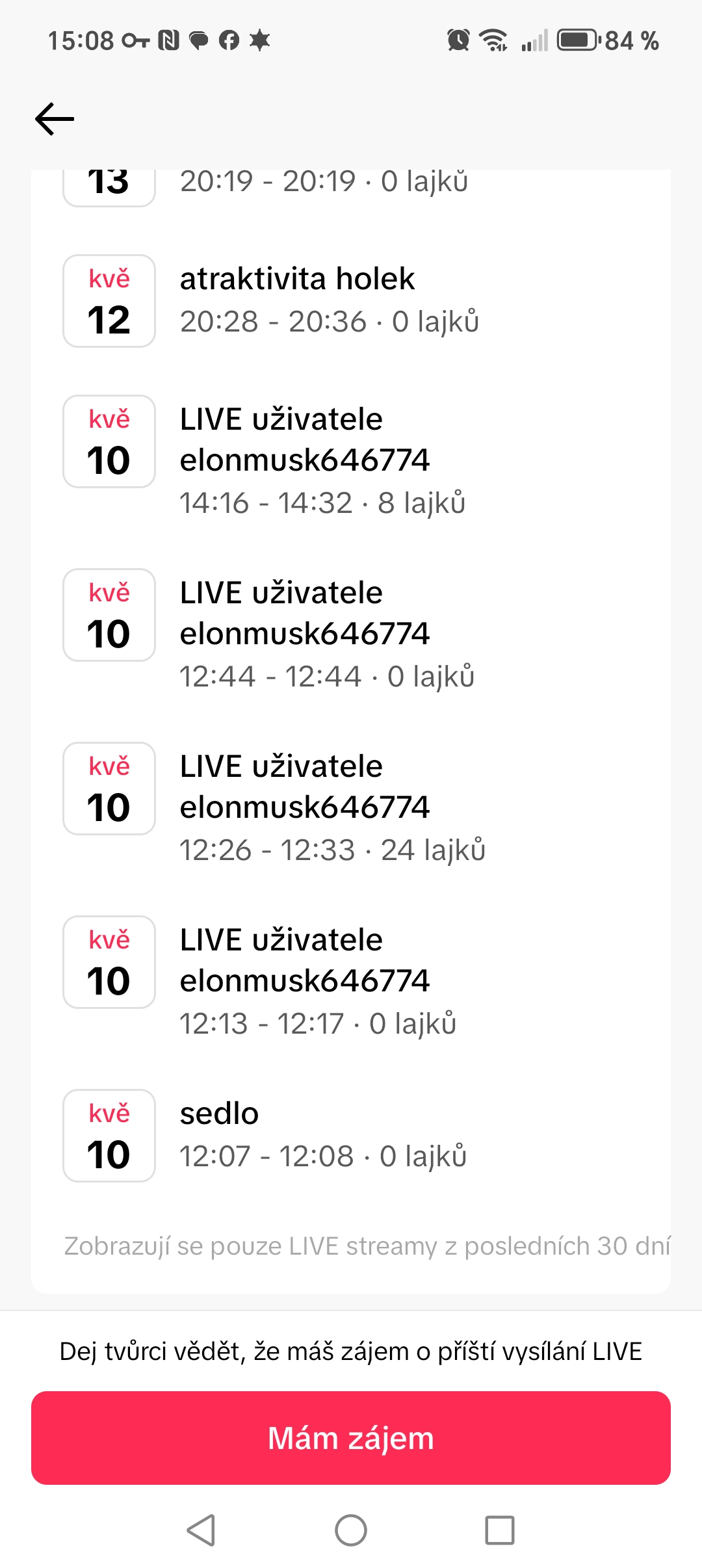 Dokonce i mezi Live streamy jsem měl pak Ucet od Elona Maska.