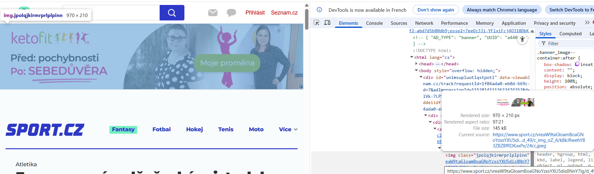 Blokování reklam na sport.cz