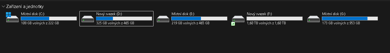 uf, cekal jsem, ze aspon jednou otevres spravu disku (diskmgmt.msc) a podivas se, jak ty disky vypad… nový