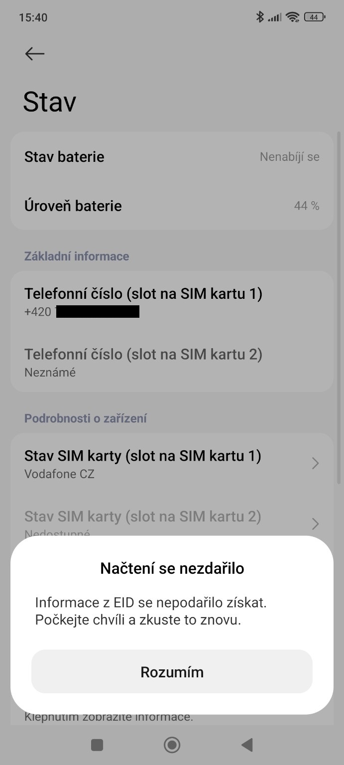 Eid nelze zobazit, kolega co má taky Xiaomi Redmi Note 14 Pro+ 5G tak mu to normálně funguje. V příloze foto... Budu rád za jakékoliv rady.