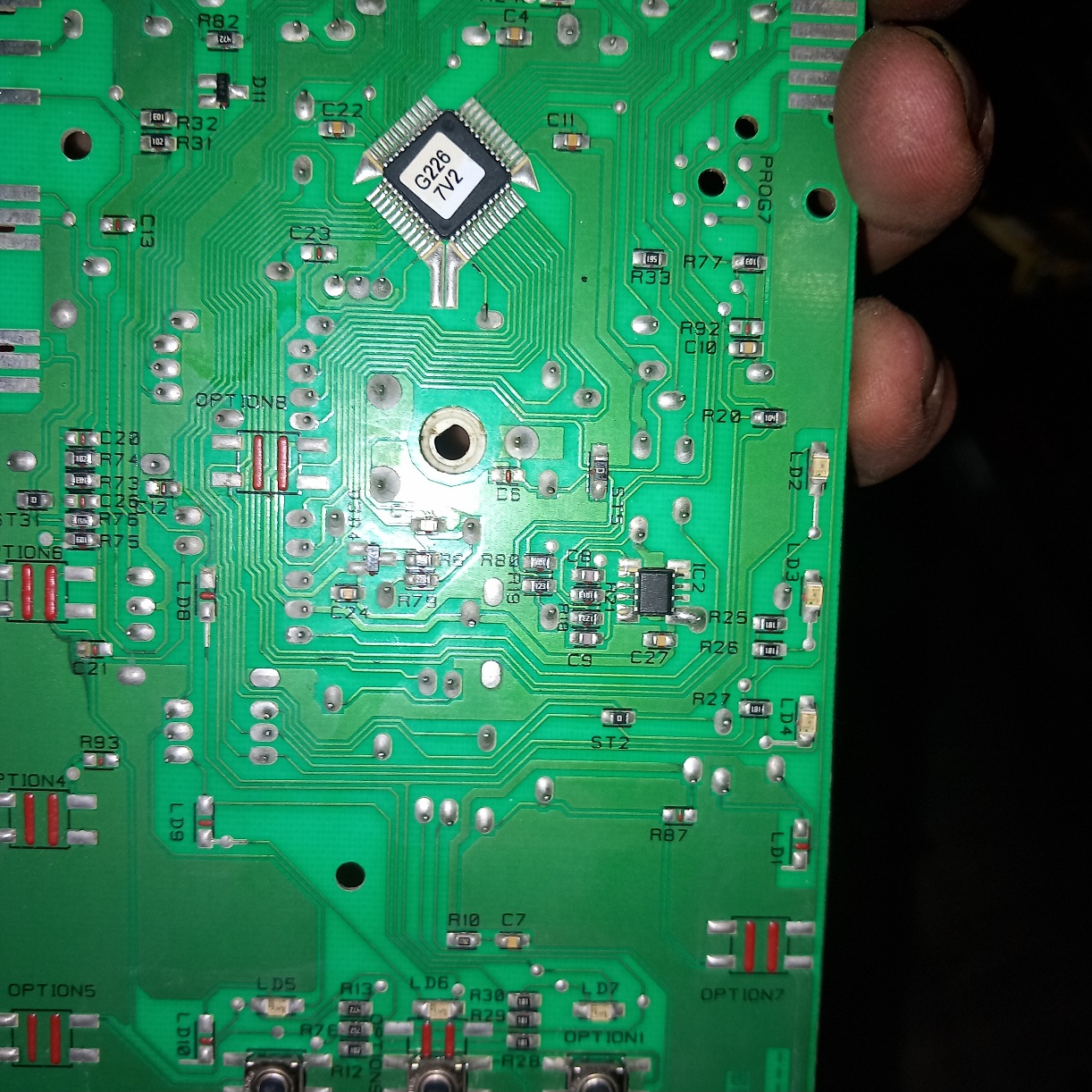 Konkretne jde o ridici desku pracky,to mi asi stacilo jako odpoved a pridam jeste jeden dotaz ty semtam cerne fleky,je mozne ze byto mohl byt problem ke spravne cinnosti pracky?