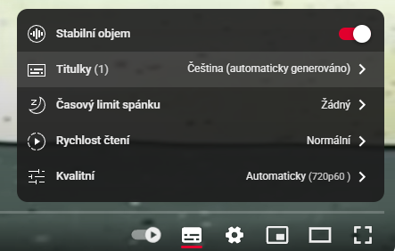 "Titulky" → vybrat "Cestina - Automaticky generovano".