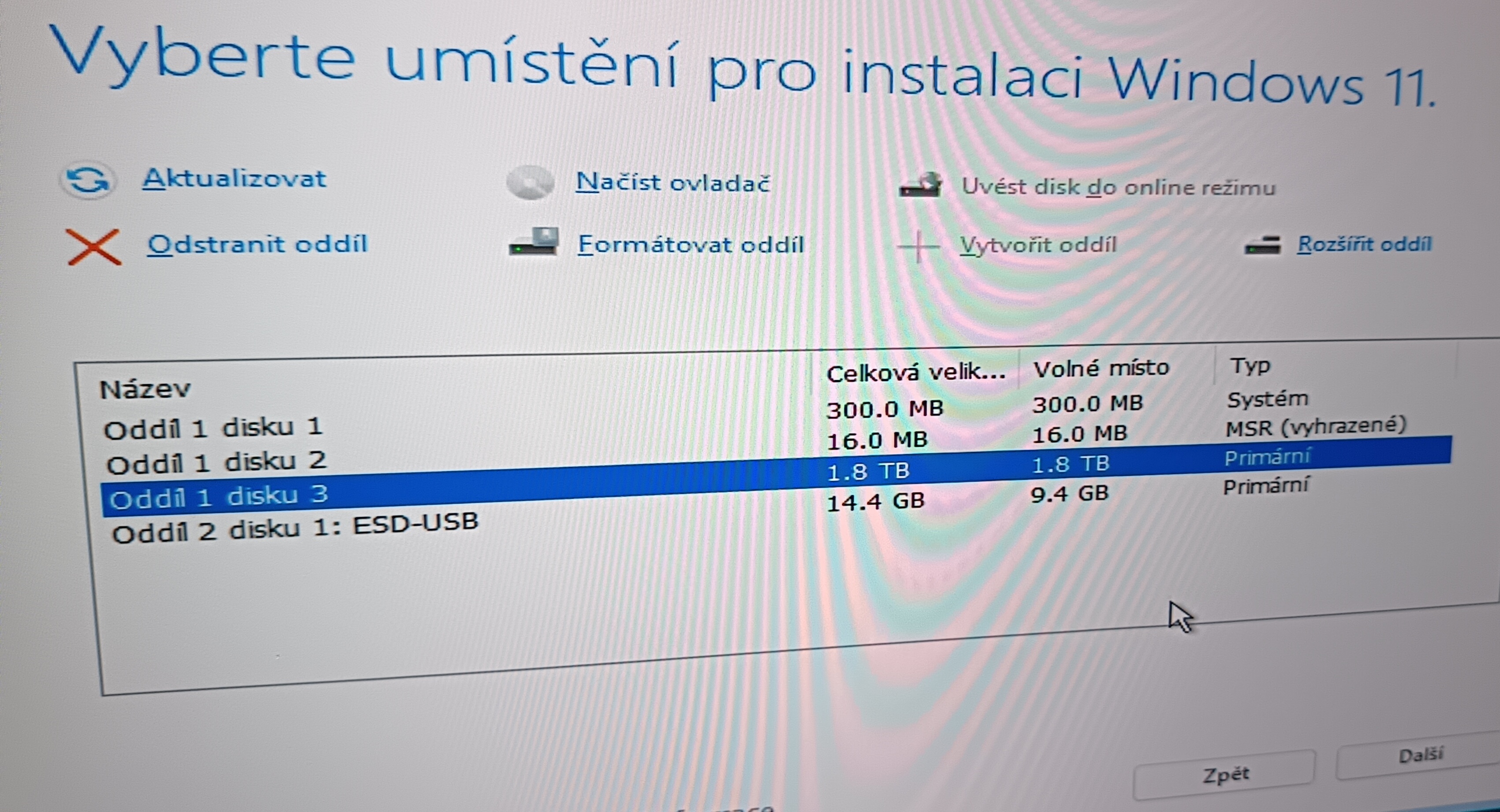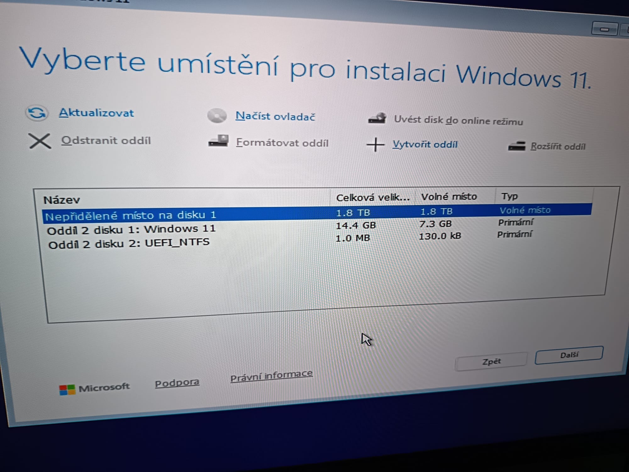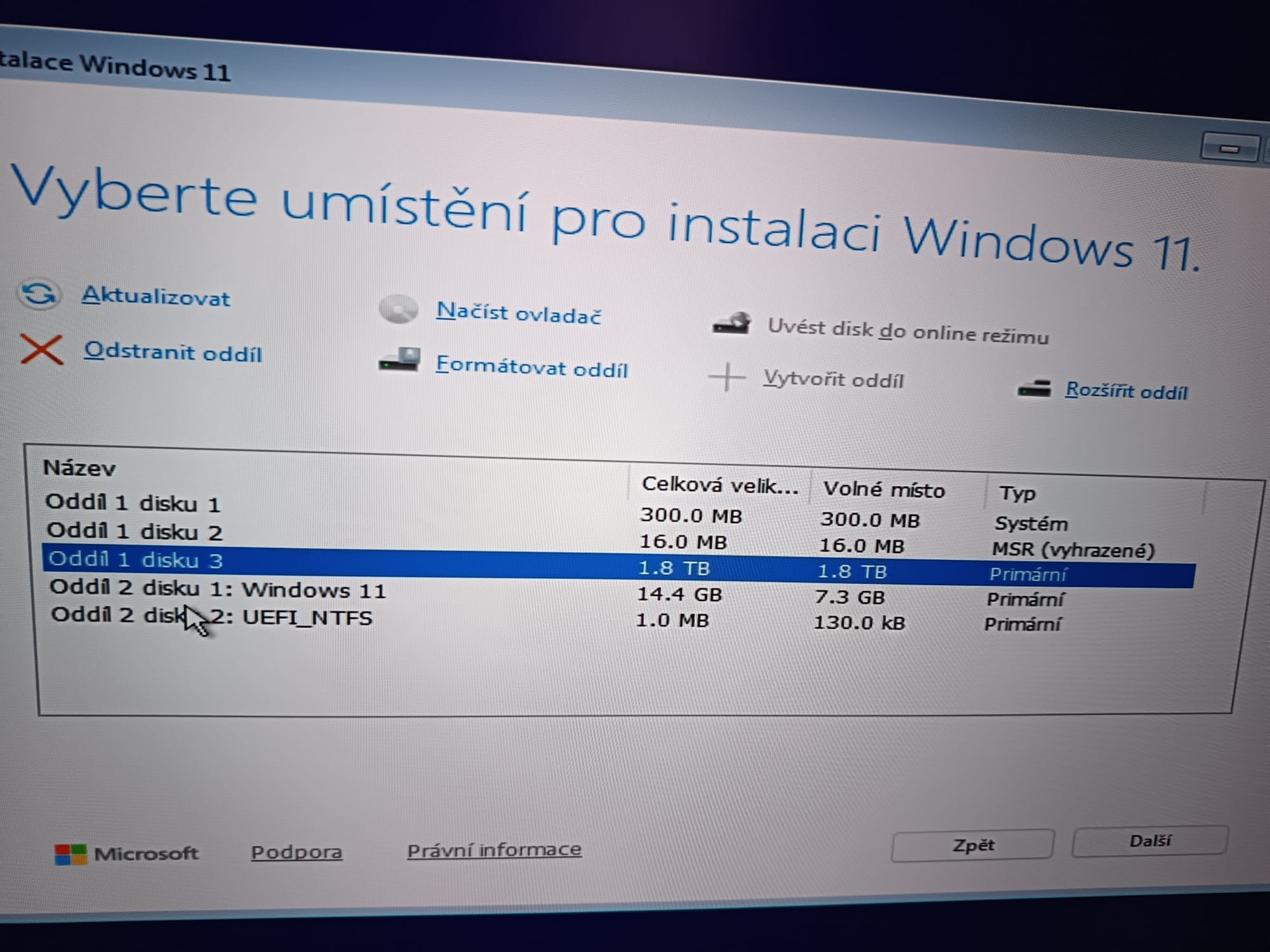 A ještě jedno malé rýpnutí: "musi zbyt jen jeden oddil ktery zvolis k instalaci" Já tam nenechávám ani jeden oddíl a instaluju na prázdné místo