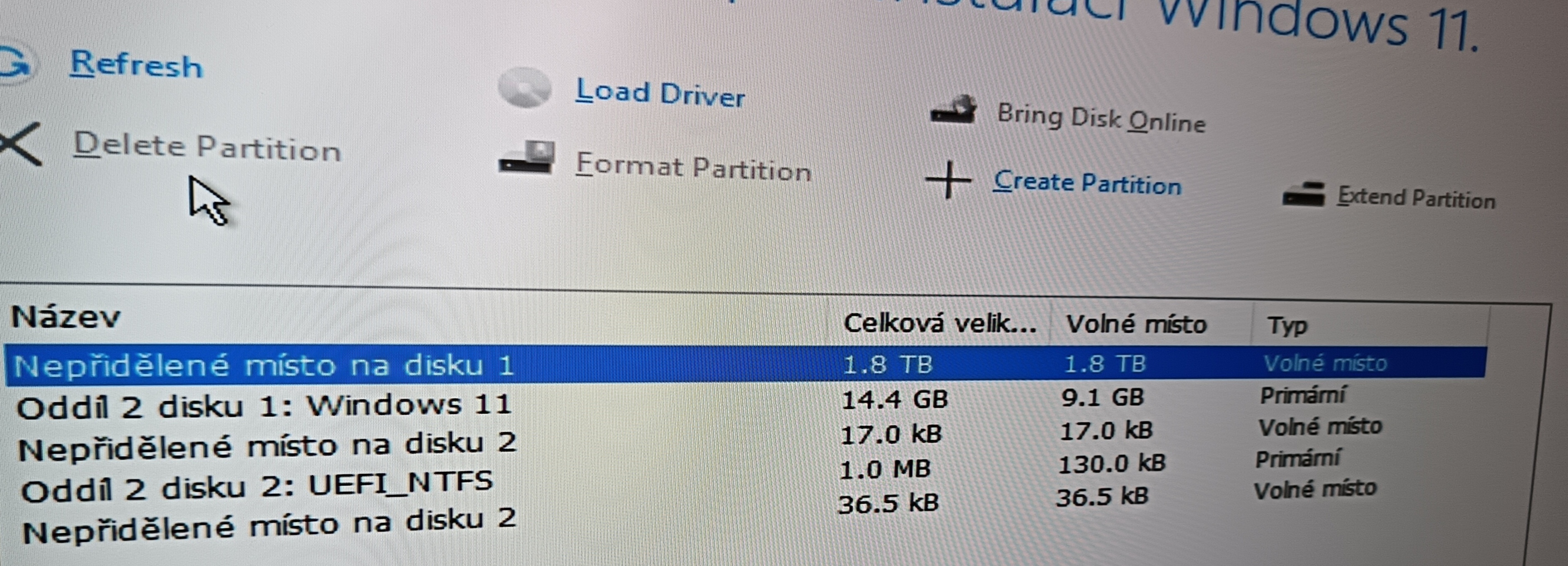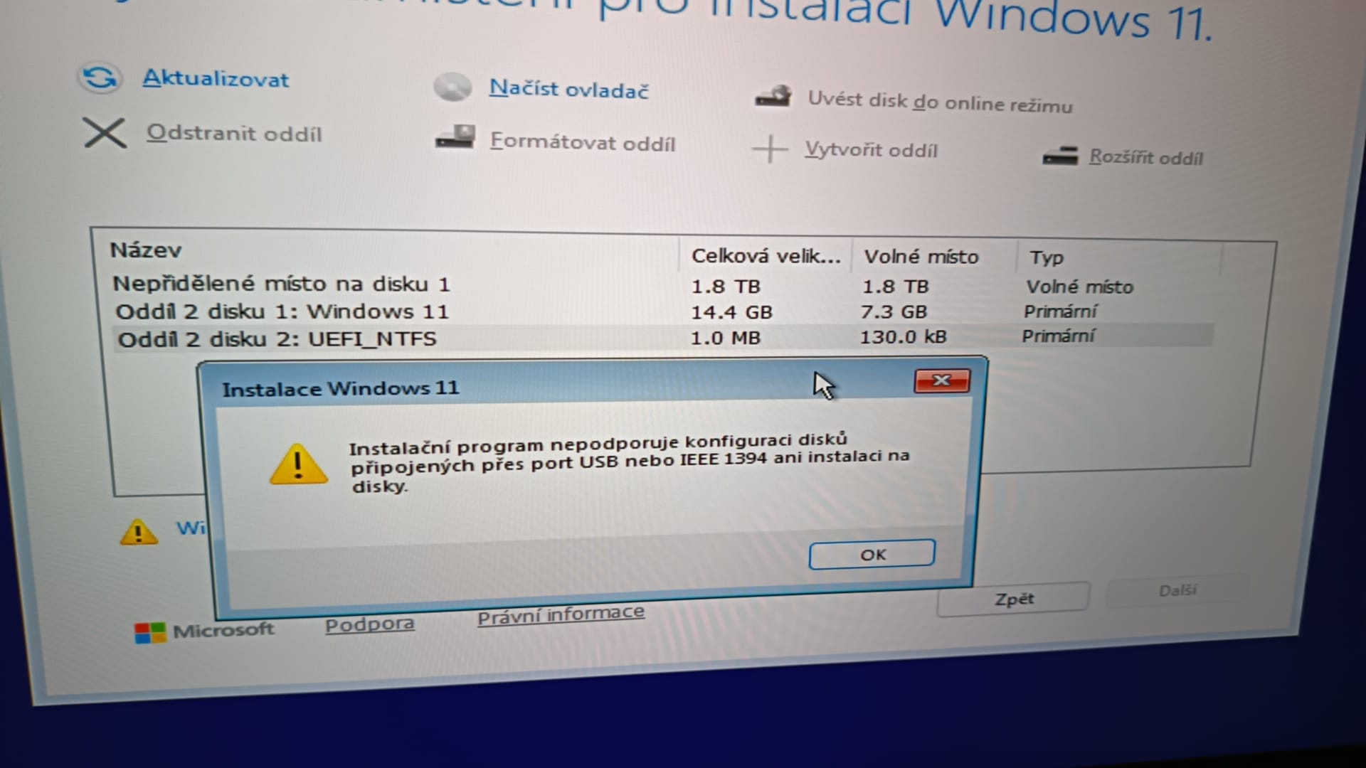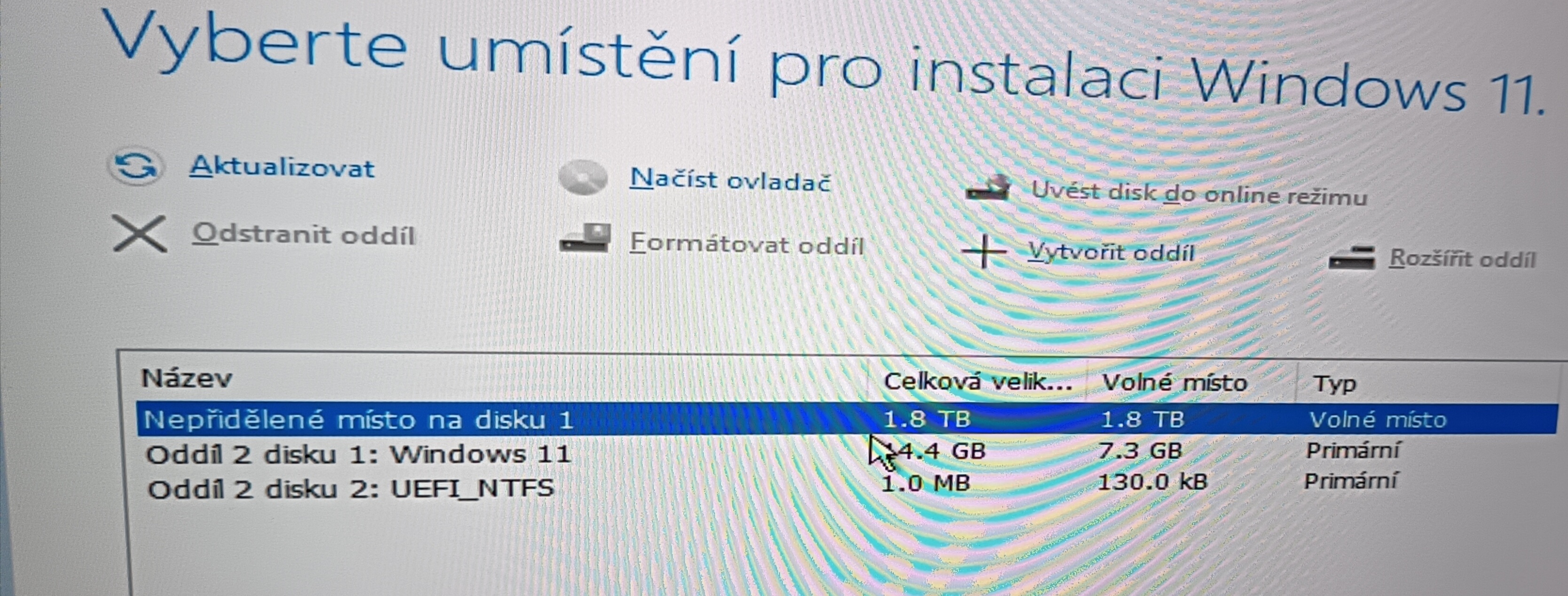 A ještě jedno malé rýpnutí: "musi zbyt jen jeden oddil ktery zvolis k instalaci" Já tam nenechávám ani jeden oddíl a instaluju na prázdné místo