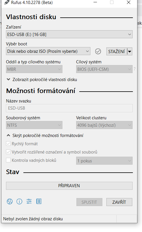 jedna se o rufus verzi 4.9 p, a mam to takhle nastavenou instalacku