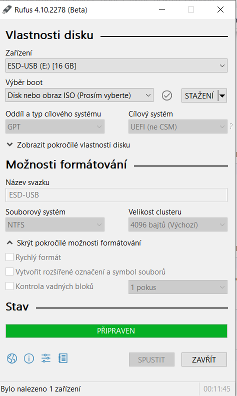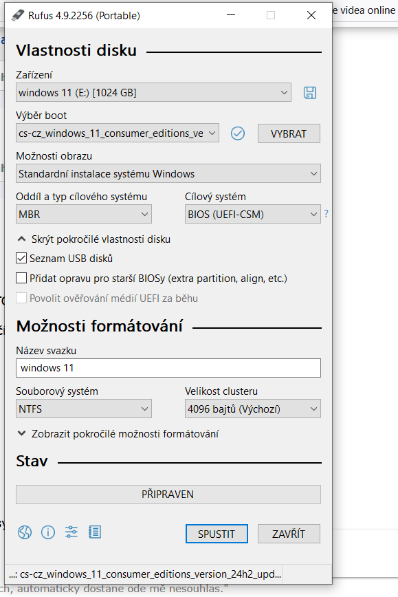 Ten bootovaci USB jsi udelal jak, pres jaky program, kde a jakou verzi Windows 11 jsi stahl ?