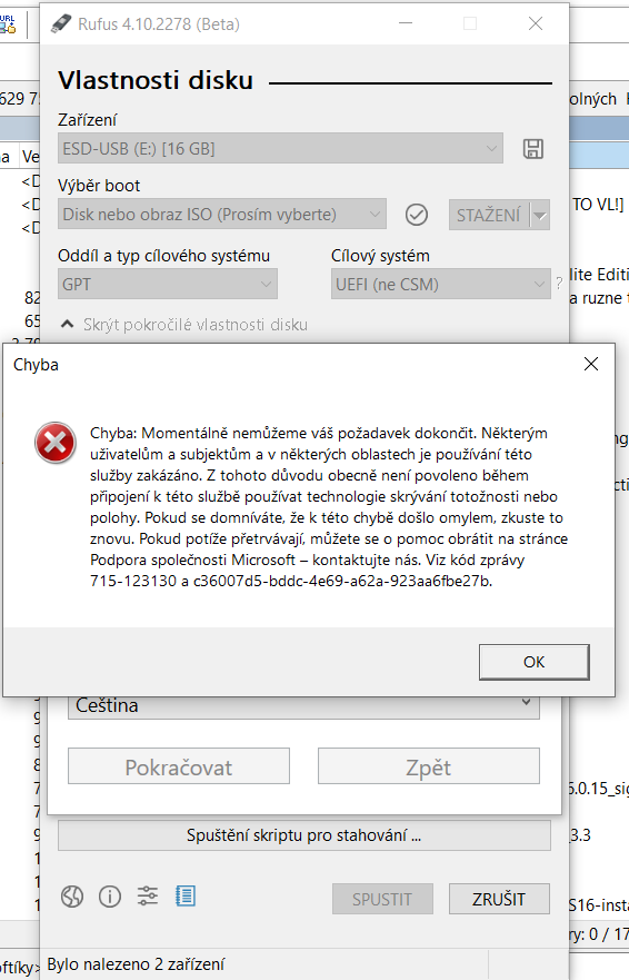Pak uz jen staci kliknout na POKRACOVAT. Normalne by se mel automaticky stahnout adekvatni obraz Windows a vytvorit instalacni medium.