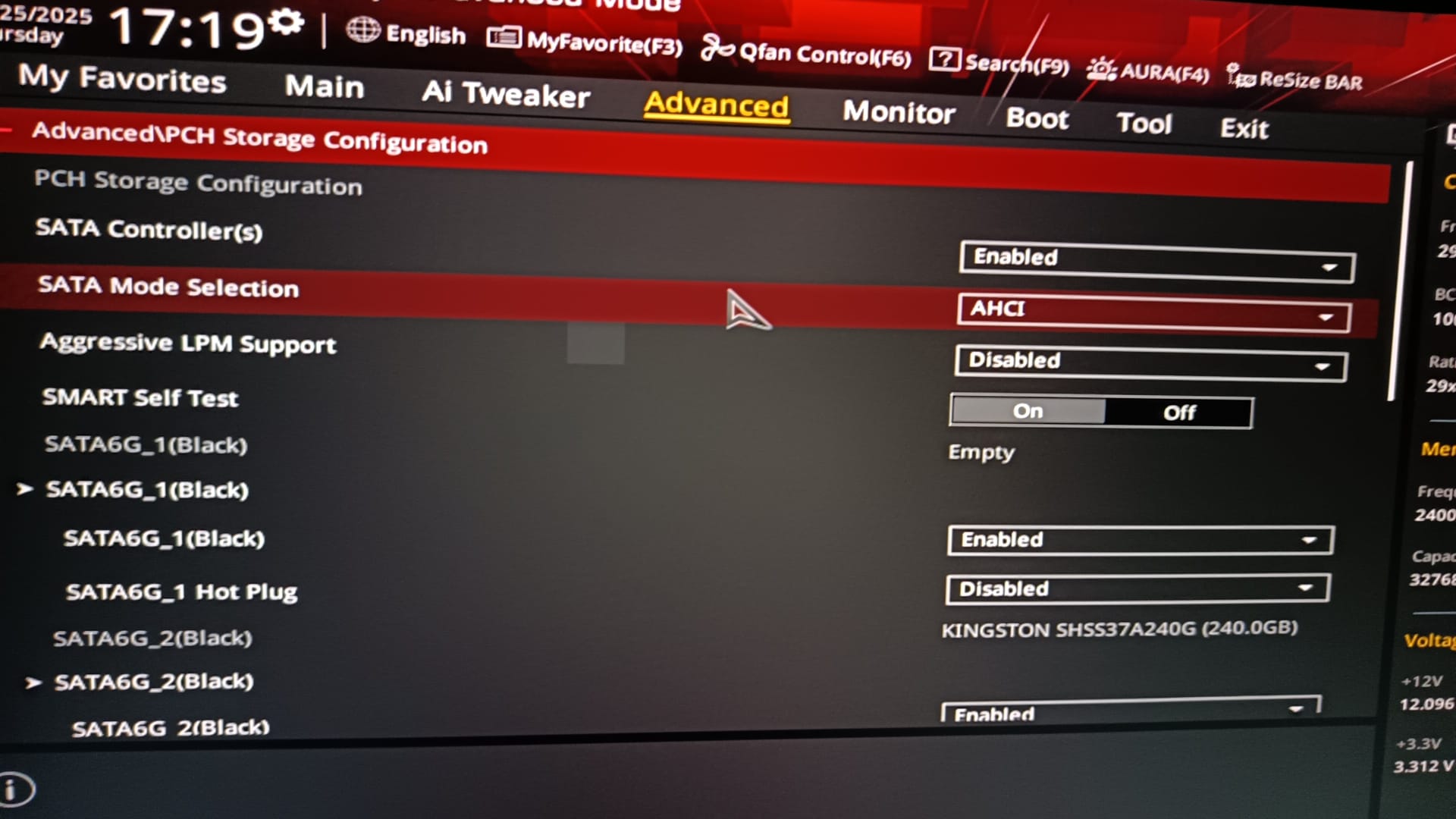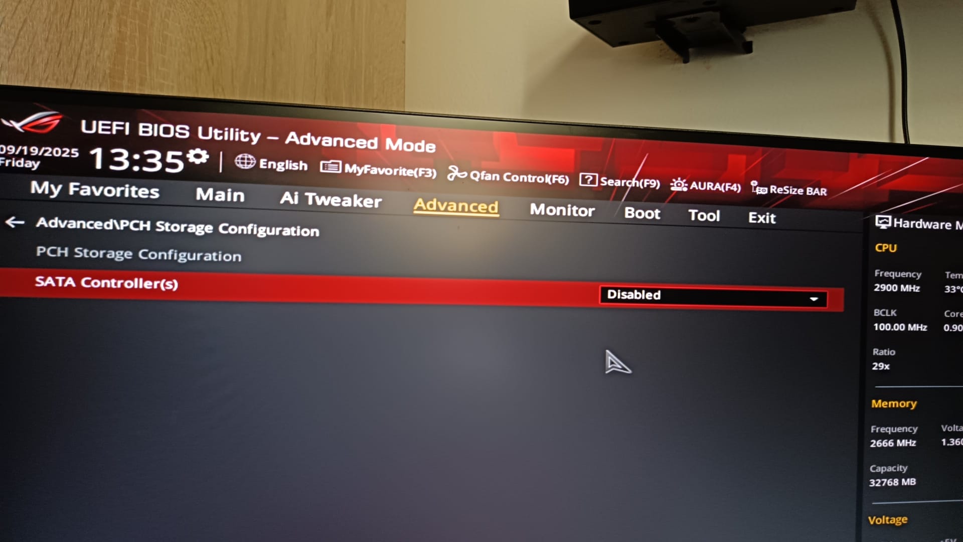 Disk je připojený přímo do desky. disk jsem nastavil v BIOSu jako Uefi.