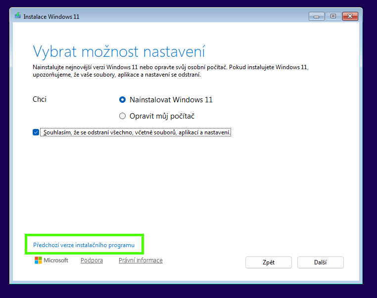 1) Misto instalace klikni na STAZENI 2) Vyber Windows 11 3) Edici: 4) Architektru x64, jazyk Cesky