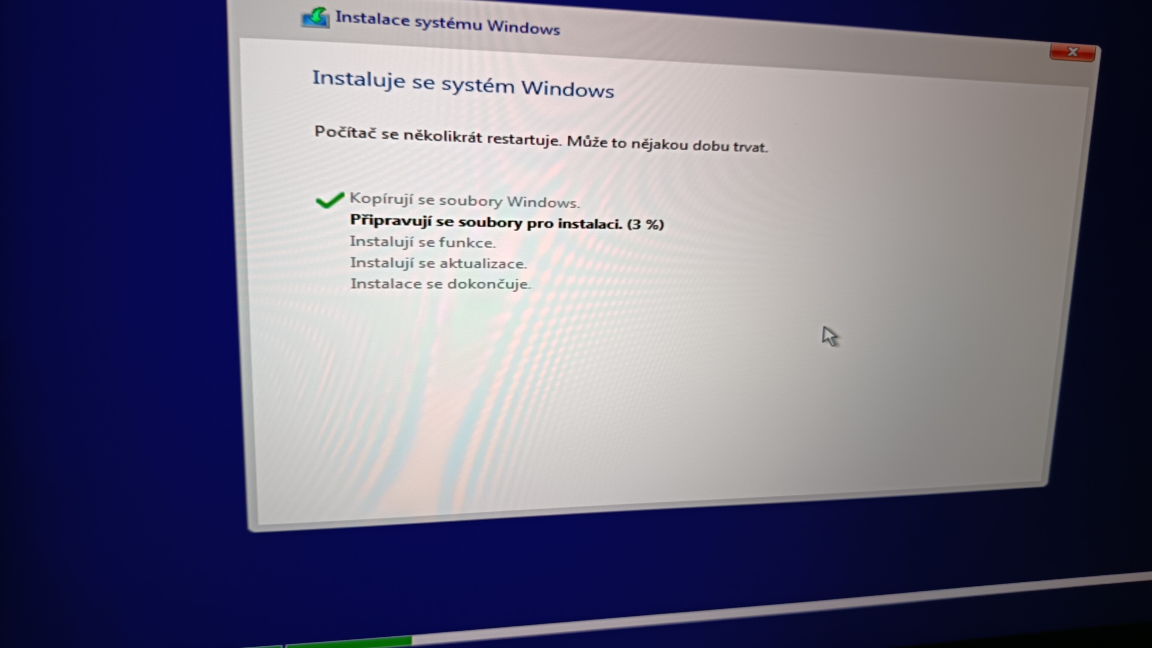 Slava mam, instalace se rozbehla, kopiruji soubory na fleshku. + nasteveni Rufus podle HPET