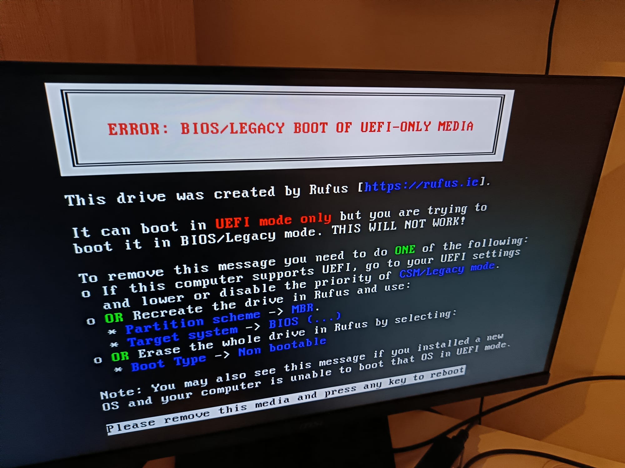 Může se spustit pouze v režimu UEFI, ale vy se ho pokoušíte spustit v režimu BIOS/Legacy. TO NEBUDE FUNGOVAT!