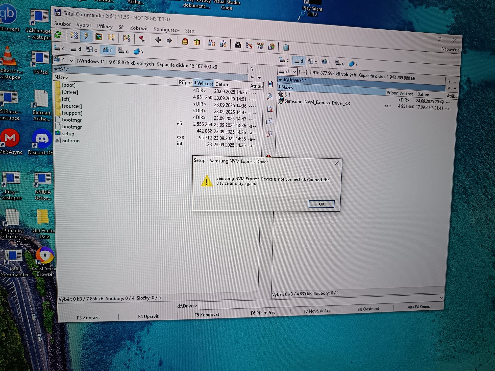 Na tu Instalacni flesku Windows, pridej DRIVER pro Samsdung ktery stahnes zde : https://www.samsung.com/cz/support/model/MZ-V7S1T0BW/ (instalacku zapoj do PC a presun ten stahle soubor Samsung_NVME_DRIVER.exe na tu USB flesku.