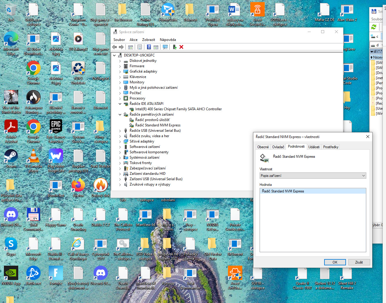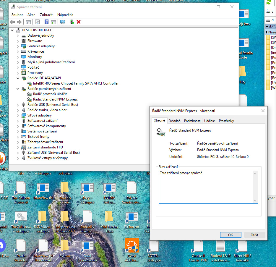 Ad 3) disk NVME v správci zarizeni jako Microsoft Storage Space Device jako D: