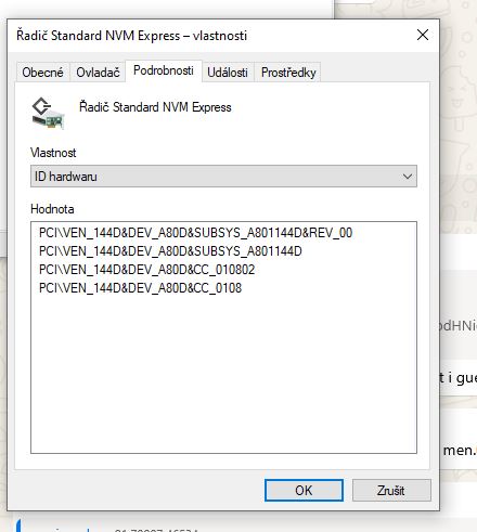 Id hardwaru tvého NVME disku je (jestli jsem to dobře opsal):