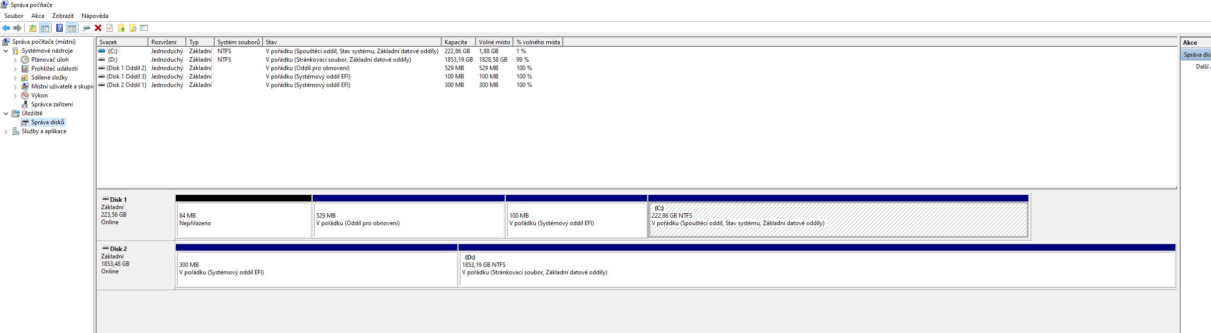 Co se týče NVME, tak tam chybí oddíl pro obnovení, což může značit nějaký problém při instalaci... ale na druhou stranu to podstatné a to EFI oddíl a oddíl s Windows tam je, sice nevíme jestli i s tím, co tam má být... Jo a disk je připraven pro UEFI režim bootování.