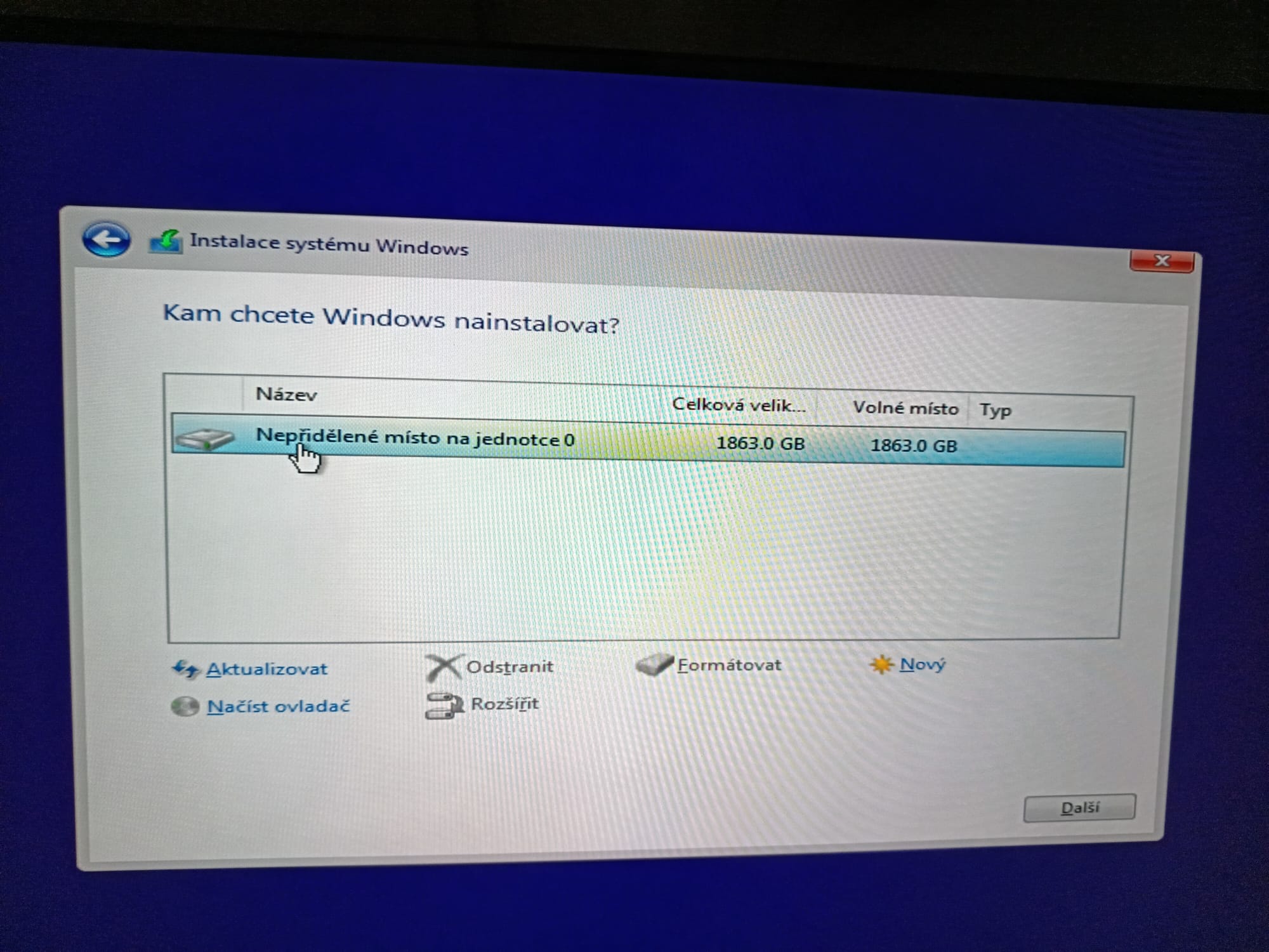 Pořídil jsem nový disk a instaluji čistou instalaci na nový disk.