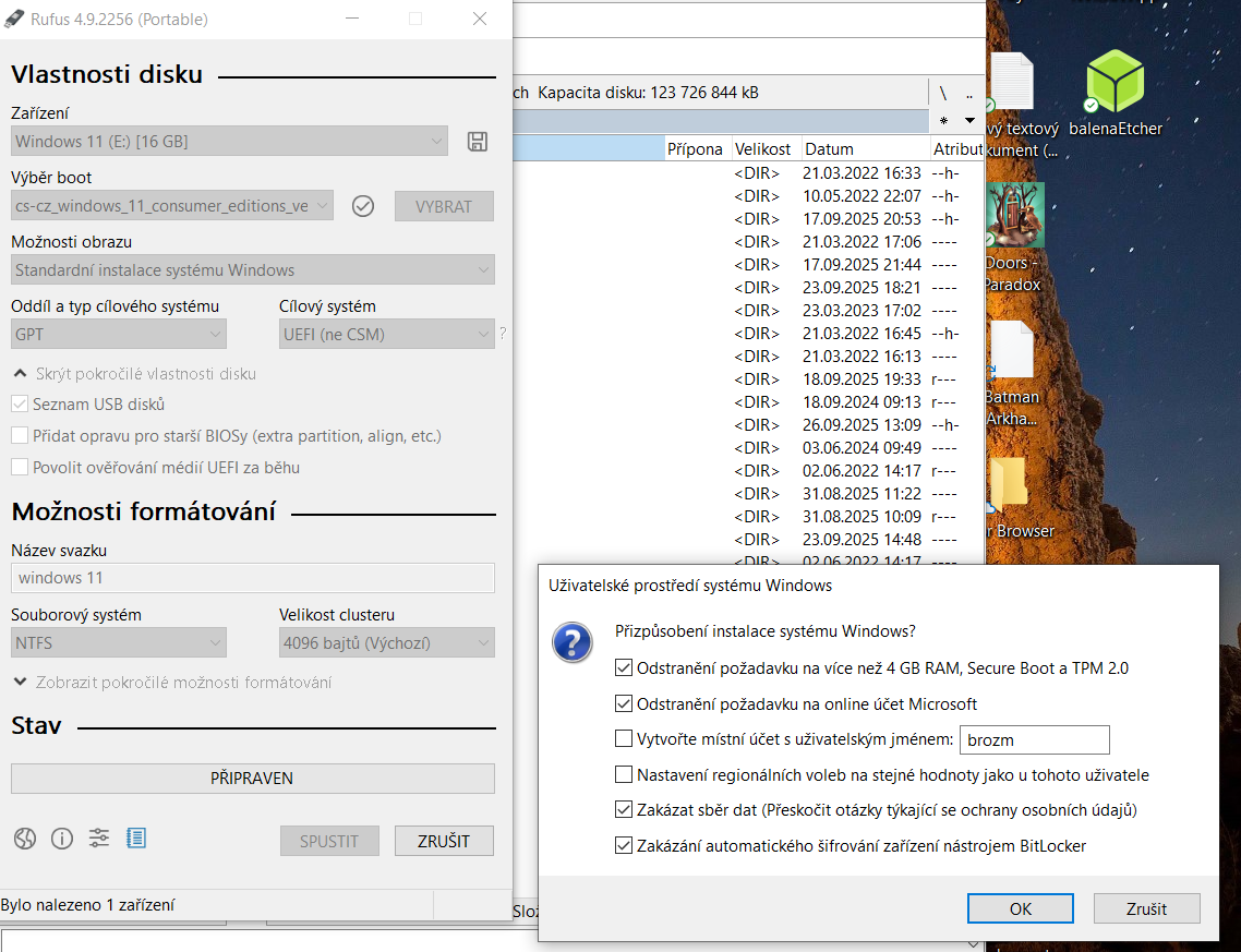 jedna se o rufus verzi 4.9 p, a mam to takhle nastavenou instalacku