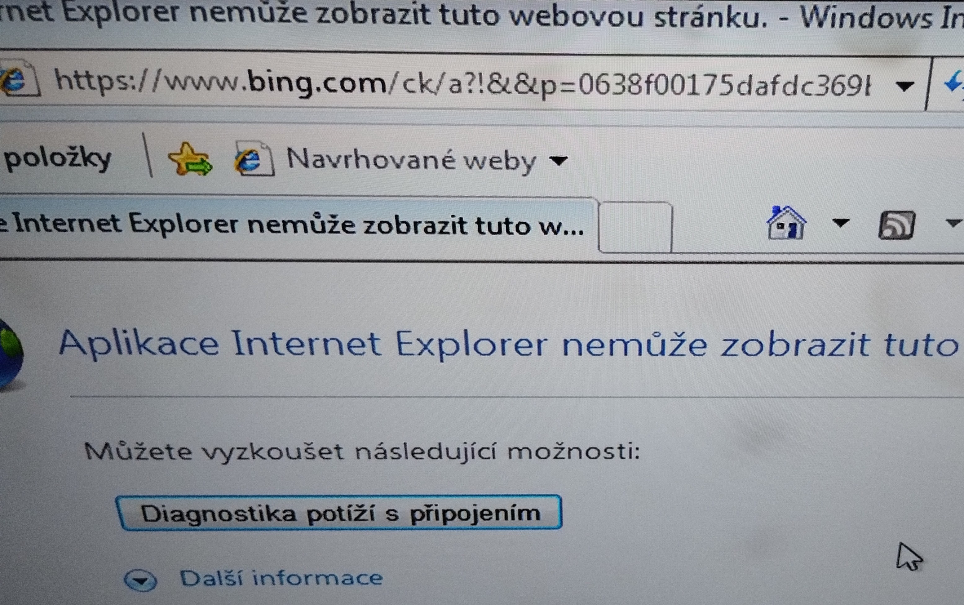 Dám Explorer a hned ukáže že nemůže zobrazit webovou stránku