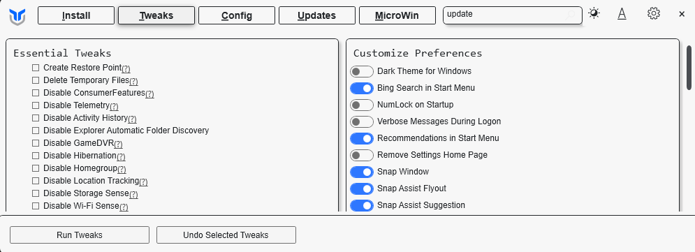 Jelikoz je to spusteno v Powershell, samotny terminal i kdyz GUI okno je zobrazeno zvlast fungue jako takovy nativni debug viewer kde jde videt co se deje v pozadi pri kazdem Tweeaku, pro zakazani Update jde videt ze pouziva nasledujici techniku : )