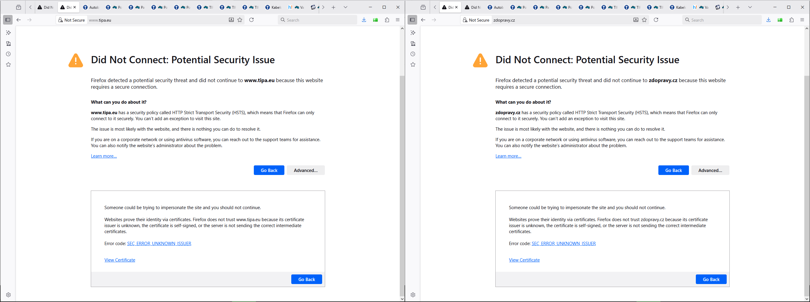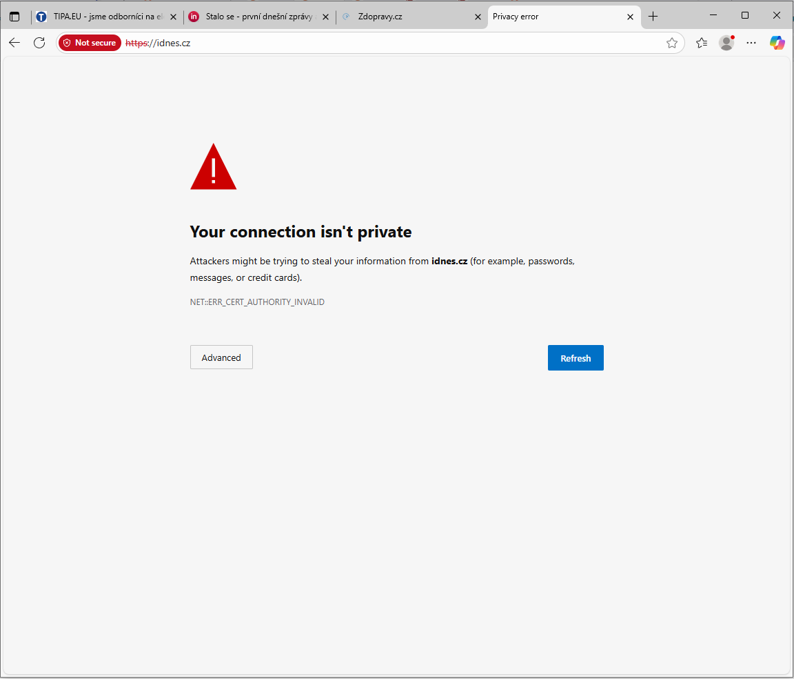 Například když jdu úplně běžný web jako https://www.novinky.cz/ tak Firefox zahlásí chybu se zabezpečením - viz screenshot v příloze.