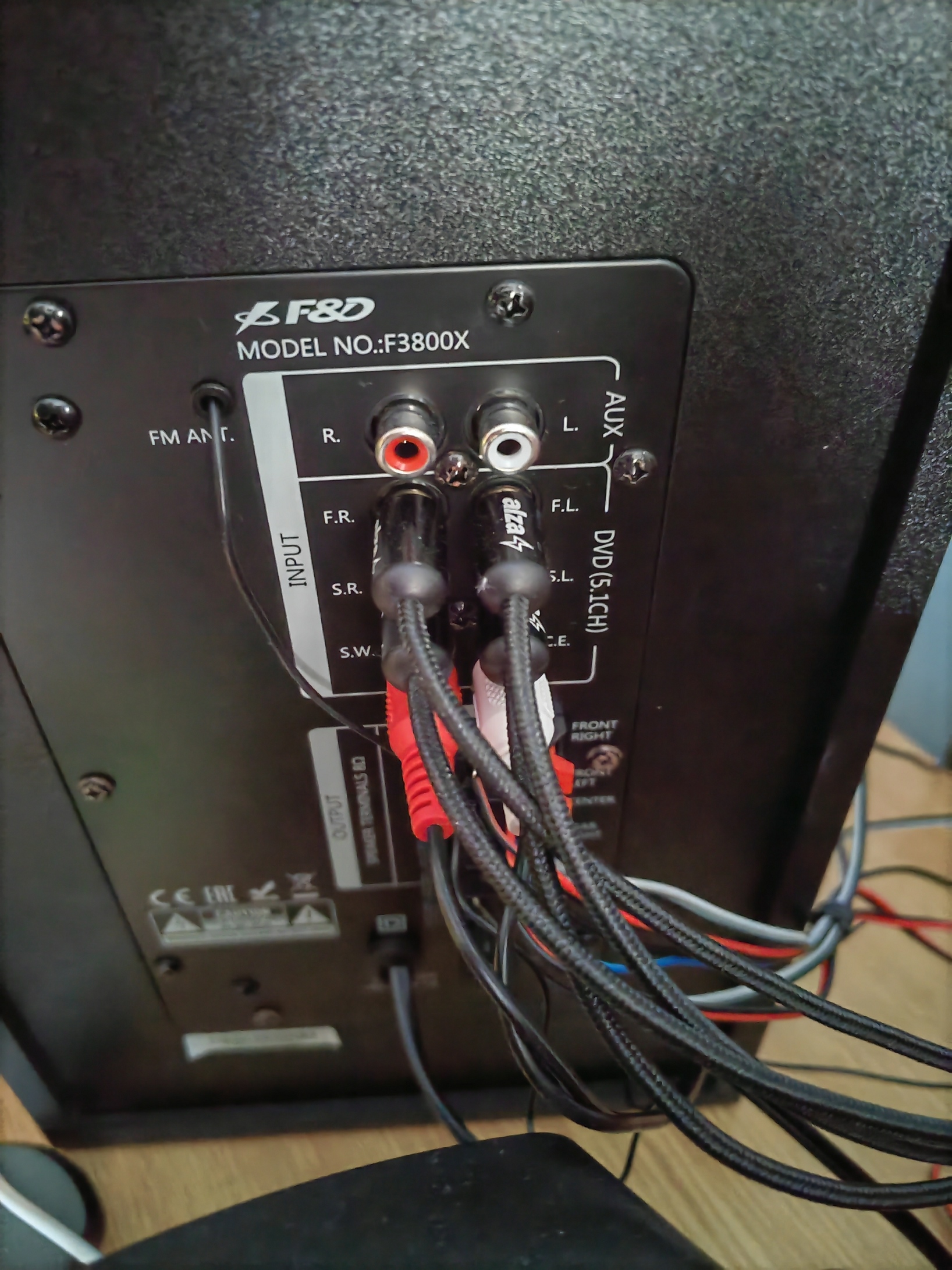 Přesně podle návodu. Přes kabel Cinch z beden do zvukovky pod 5.1