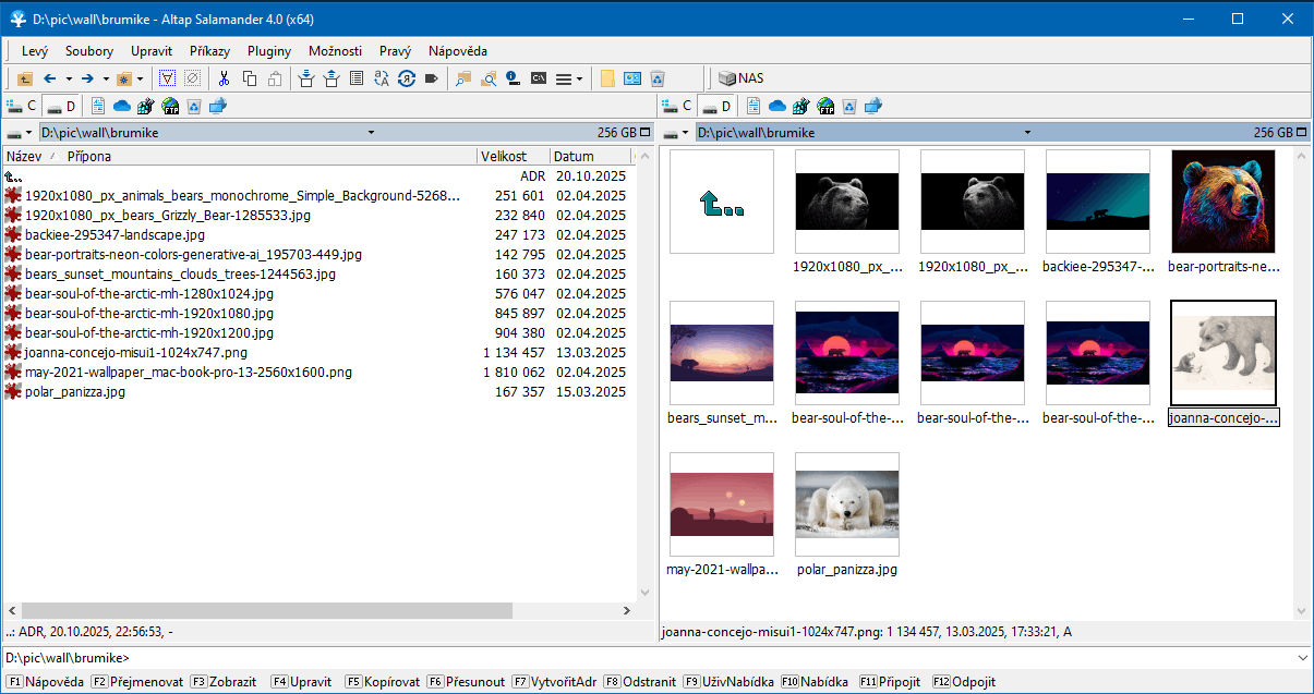 a když chceš obrázky v reálu, klasickou klávesou f3 se zapne vestavěný prohlížeč obrázků. je součástí instalace správce souborů, čili má své možnosti, žádný mrchosoft ti ho nezruší ani nepředělá v příští verzi ovládání zleva nahoře doprava dolů.