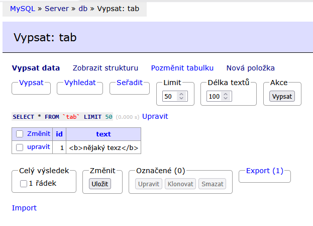 Pokud dáš do tabulky mysql třeba <b>nějaký texz</b>