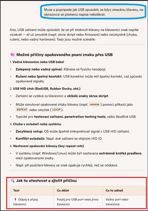 Apropos "Mimo fyzické poškození", nepisu nic o "vadnem" USB portu, ale spise o problemu na urovni komunikace at urovni firmware/kodu (scan code) nebo jeho prekladu coz se muze tykat jedne, dvou nebo treba i 10 klaves.