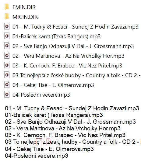 Chci udělat pořádek ve starém MP3 přehrávači co mám po synech. V počítači LENOVO s W10 se mi adresář zobrazuje celkem solidně. Když jsem zkusil z adresáře udělat textový soubor v počítači, použil jsem na to příkazový řádek, některé znaky, hlavně české se zkomolily.
