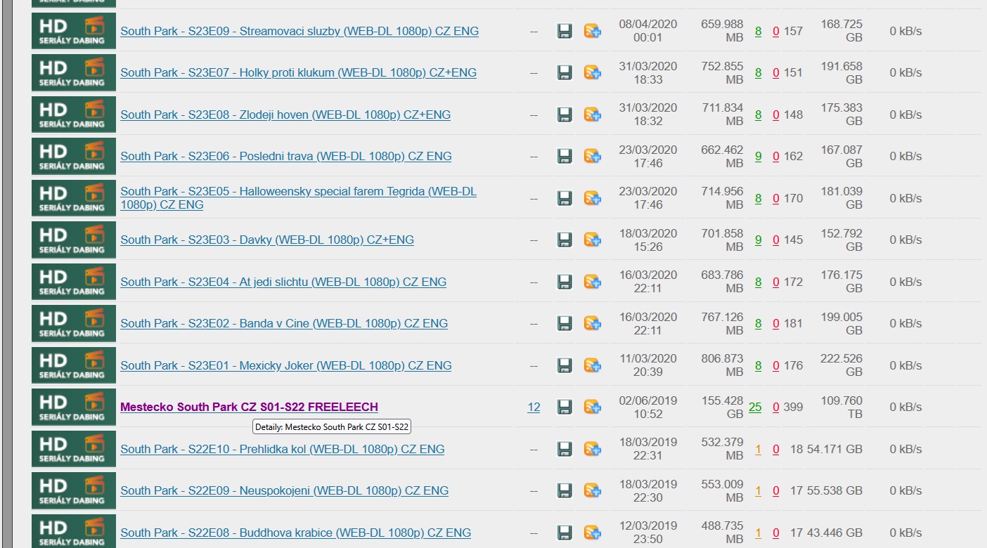 Jsou ke stažení všechny řady dabované do češtiny. A nejen seriály.