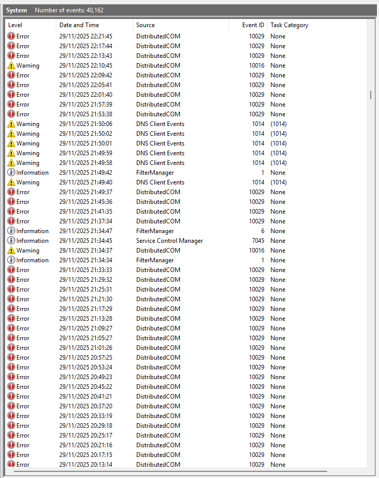 zkus si ty záznamy "distributed com" otevřít a zamyslet se, co umíš vyřešit. asi to ničemu moc nepomůže.