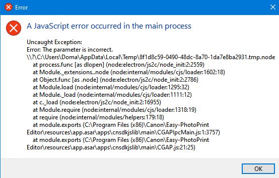 Zdravím, tahle hláška se mi objeví, když chci otevřít aplikaci Canon Easy Photoprint. V PC je Win 10.