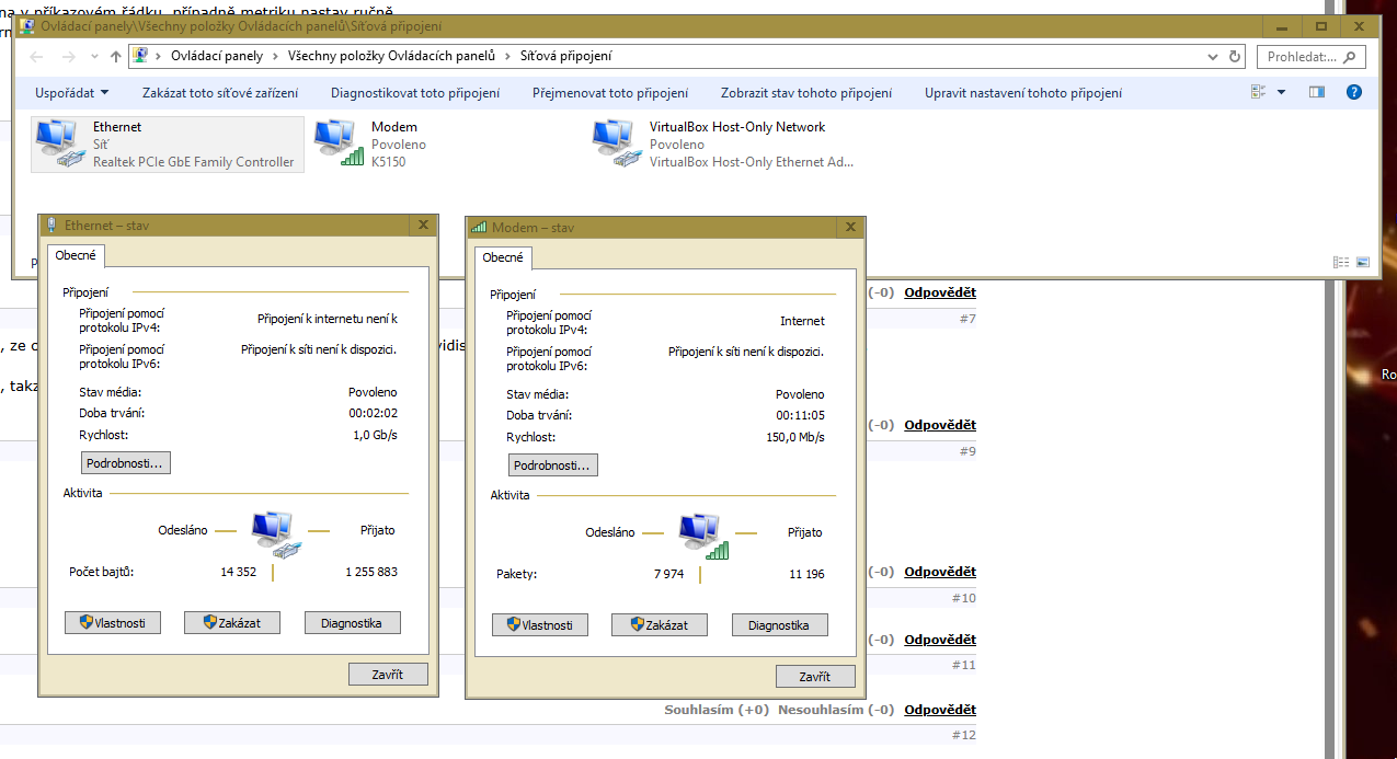 Do jednoho USB na PC jsem zasunul LTE modem, internet fungoval, když sem připojil router do LAN, windows modem odstavil a domáhal se internetu z LAN, kde žádný není.