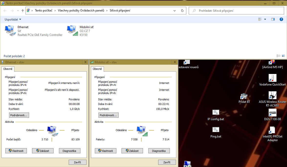 Do jednoho USB na PC jsem zasunul LTE modem, internet fungoval, když sem připojil router do LAN, windows modem odstavil a domáhal se internetu z LAN, kde žádný není.