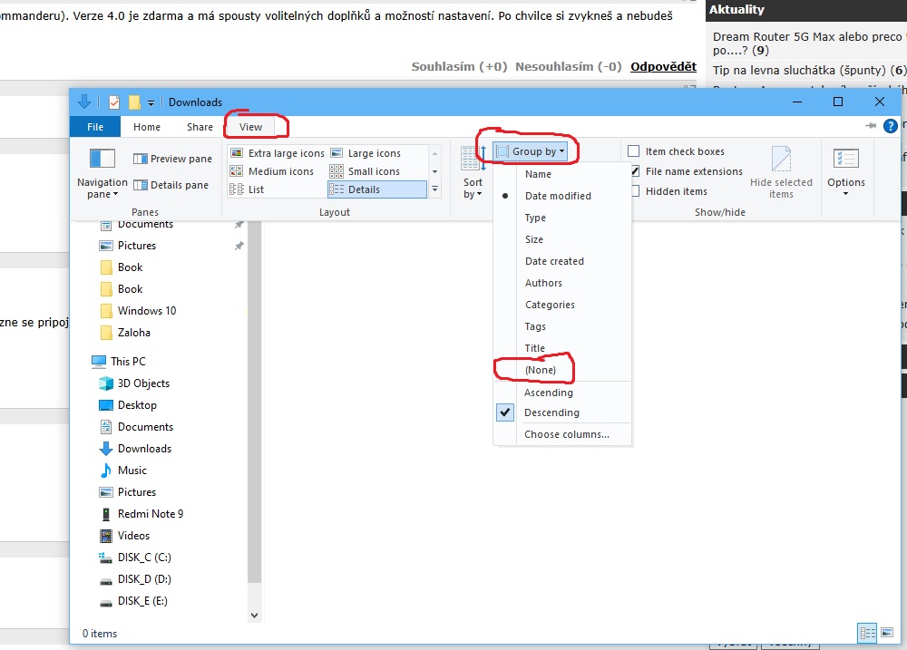Win10, adresar Stahnute subory, zoraduje mi to sice podla zvolenia napr podla datumu, velkosti a pod, ale vzdy v ramci svojho nejakeho triedenia, tento tyzden, minuly tyzden, minuly mesiac ...