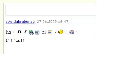 Tak mám asi špatně nastavený browser (FF), ale pokud si zkopíruji nějakou adresu abych ji potom v příspěvku Poradny vložil jako odkaz, po kliknutí na ikonu vložení se mi objeví onen předpřipravený URL-vzorec bez rovnítka.