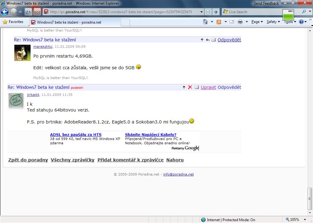 Tak v IE8 (beta W7, se kterou si prave hraju) mi obcas nacte jenom kus prispevku.