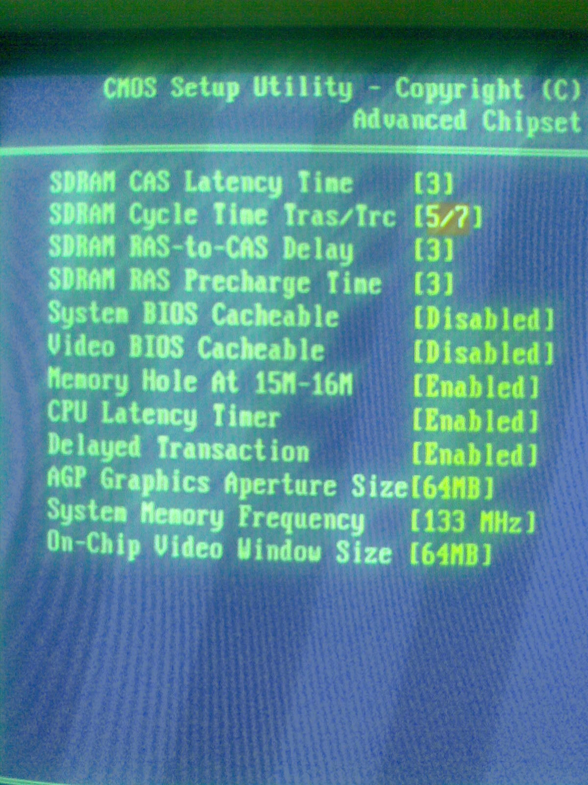 Potom zkus system memory frequency na 100MHz a ty prvni ctyri hodnoty co zacinaji SDRAM jsou pristupne ? Nekde by mela byt nejaka polozka na znepristupneni, to znamena, ze si to system zjisti sam podle parametru pameti.