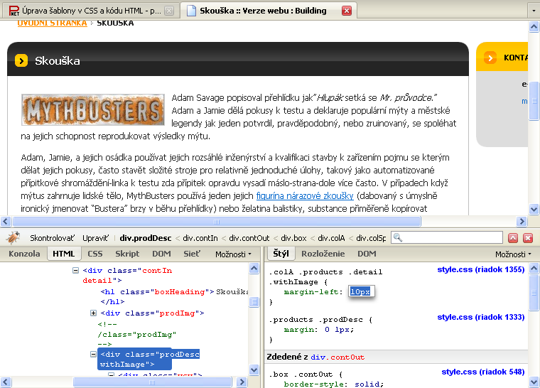 Úprava šablony v CSS a kódu HTML