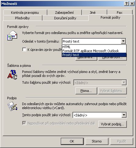 HTML nastaveno mam, ale pokud chci odpovedet/preposlat a original je v txt, pak to nejde