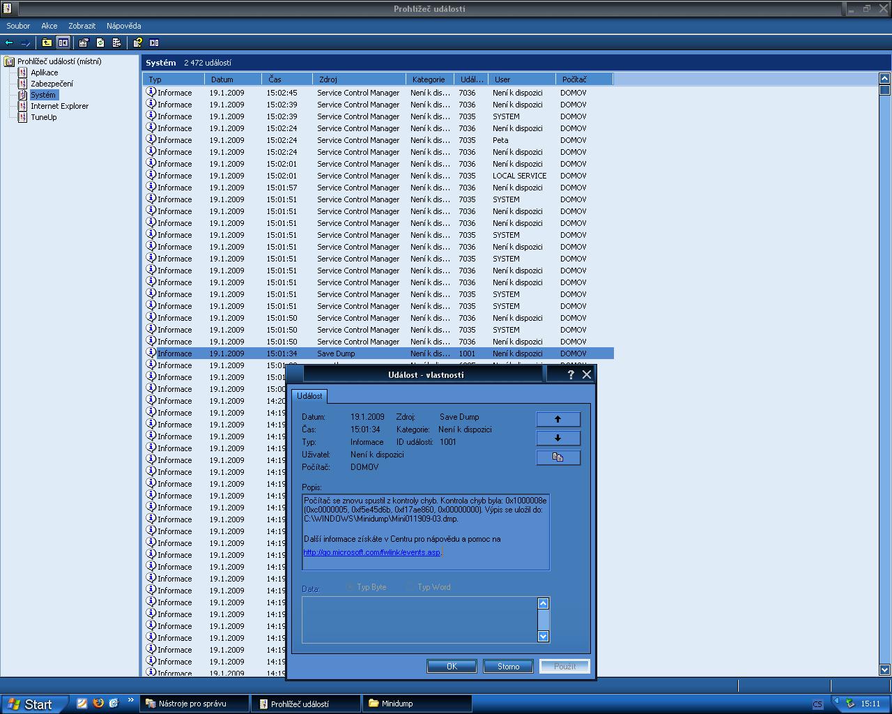 P.S dá se podle tohoto výpisu určit chybu přesněji? Viz. obr.