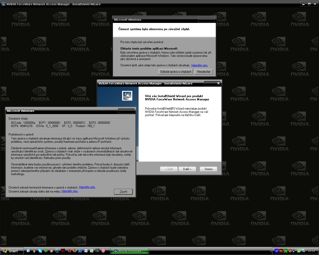 No super, instaluju ty ovladače, řekne mi to, že to jedny ov. našlo a tak je smaže, restartoval se PC, instalace pokračovala a najednou: viz příloha (co to má znamenat?)