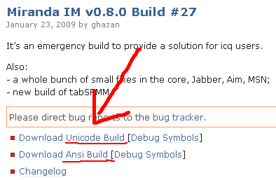 Poznas to uz pri stahovani. pokud ale stahnes celej balik, naistalujes a uzivas, nemelo by to delat. Kdyz si ale zacnes hrat s pluginama, aktualizovat jednotlive verze samostatne a tunit, pak se to stat muze. ja si taky jednou omylem do unicode baliku soupnul ANSI plugin na konverzacni okno a misto citelne zpravy jsem mel jen rozsypanej caj. chvili mne trvalo, nez jsem na to prisel, pak hodil jsem tam spravnej plugin a byl jsem ready. zkontrolovat si to muzes v nastaveni.
