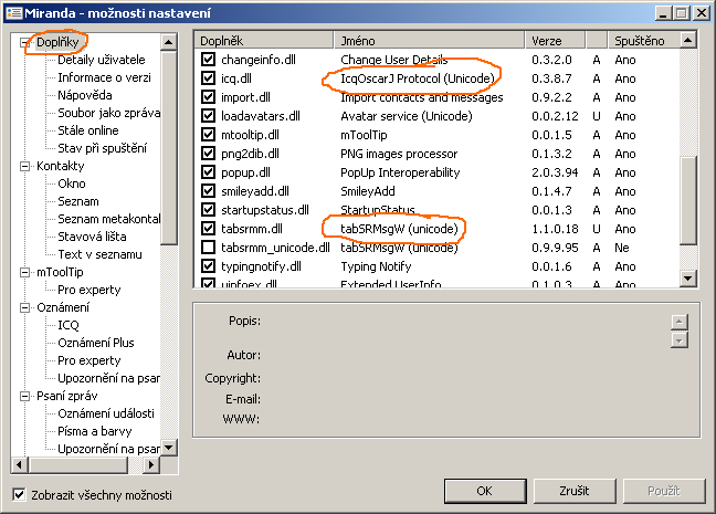 pouzivam ICQ z donuceni, original ICQ klient bych si na PC nedal ani kdyby mi za to platili a programku jsem zkousel vicero, ale nevyhovuje mi zadny. Nejlepsi byla Miranda, kdyby ale u ni fungovala cestina - teda aspon me nefunguje a za boha nemuzu prijit na to proc. V tomhle programu aby se cert vyznal.