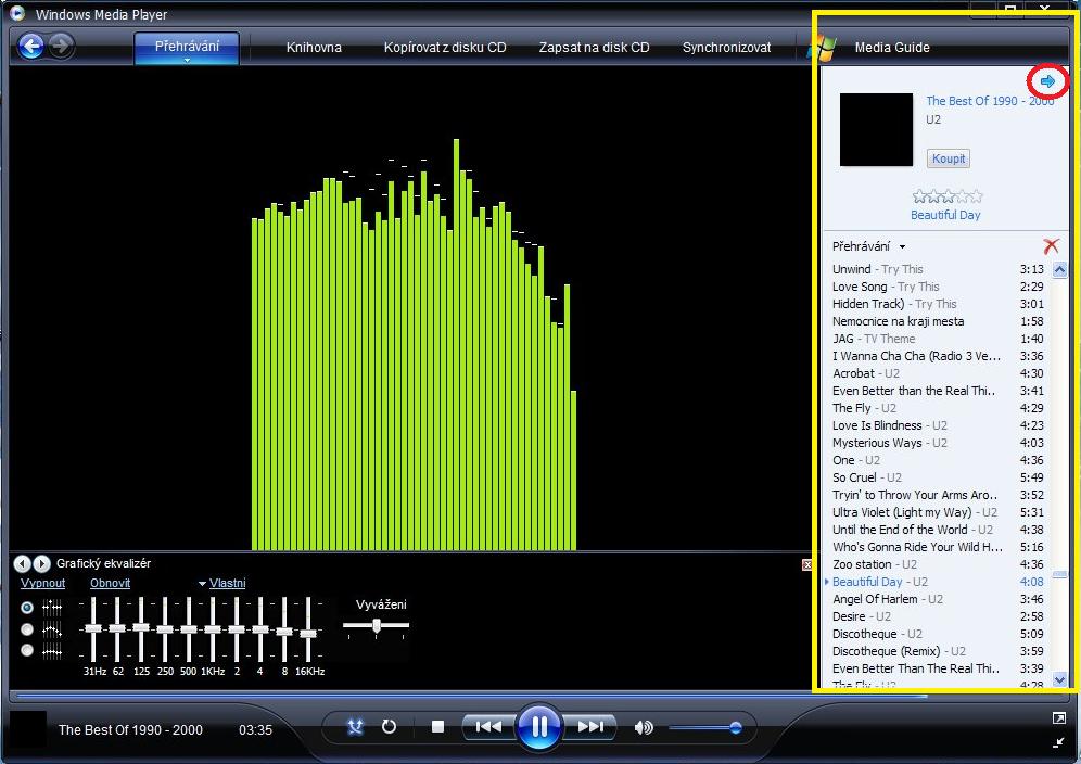 Windows Media Player - zmizel seznam přehrávaných souborů v okně přehrávače