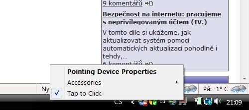 cus, s tema ventilátorama ti neporadím, ale u toho touchpodu - prilozeny obrazek.., do toho menu se dostanes - pravnym tlacitkem na ten preskrtnuty touchpod vedle hodin a zkontroluj jestli mas zaskrtnute Tap to Click.., jestli ne, zaskrtni a tvuj problem je vyresen.., jinak nevim.