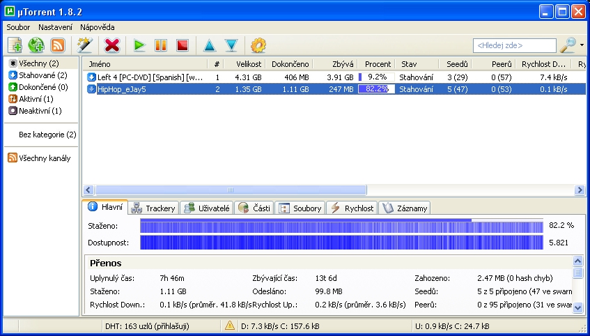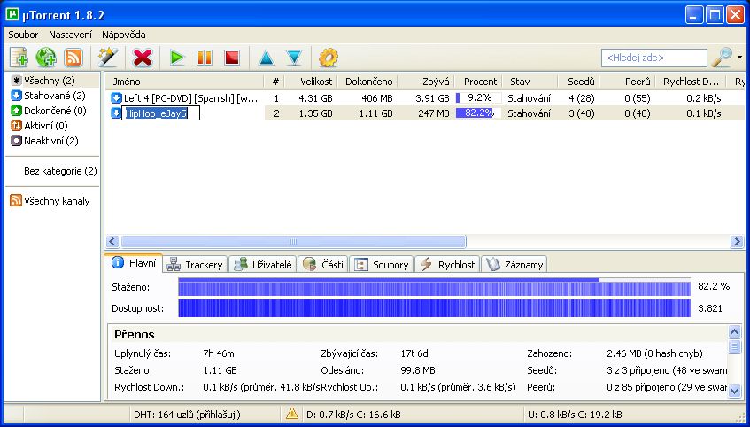 Pokud chces rychlejsi stahovani, musis byt "aktivni", to znamena nastaveni port frwarding na routeru