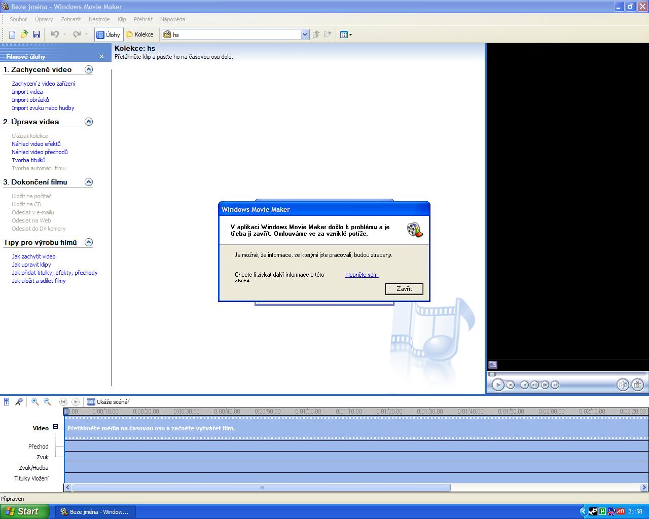 Zdravím mám takový problém ... cca po půl roku jsem zapl wmm, ale při importu movie vždy wmm padne ... viz screen ... takže tam video nejde hodit ... zkoušel jsem to přeinstalovat stahnout z netu a nahodit, ale furt ta stejný chyba, nevím jestly něco nevymazat z c/ nebo tak někde a pka to znovu nahodit kdo s tím má zkošenosti prosím poradit díky moc.